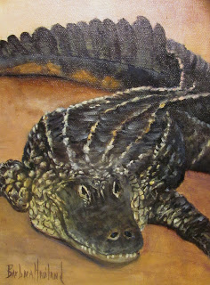 This alligator was so fun to do. I have always had a fascination for them. WE do have lots where I live in East Texas so I guess I should paint them. He is signed and comes ready to frame. He also comes with a COA and I do retain my copyrights. Barbara