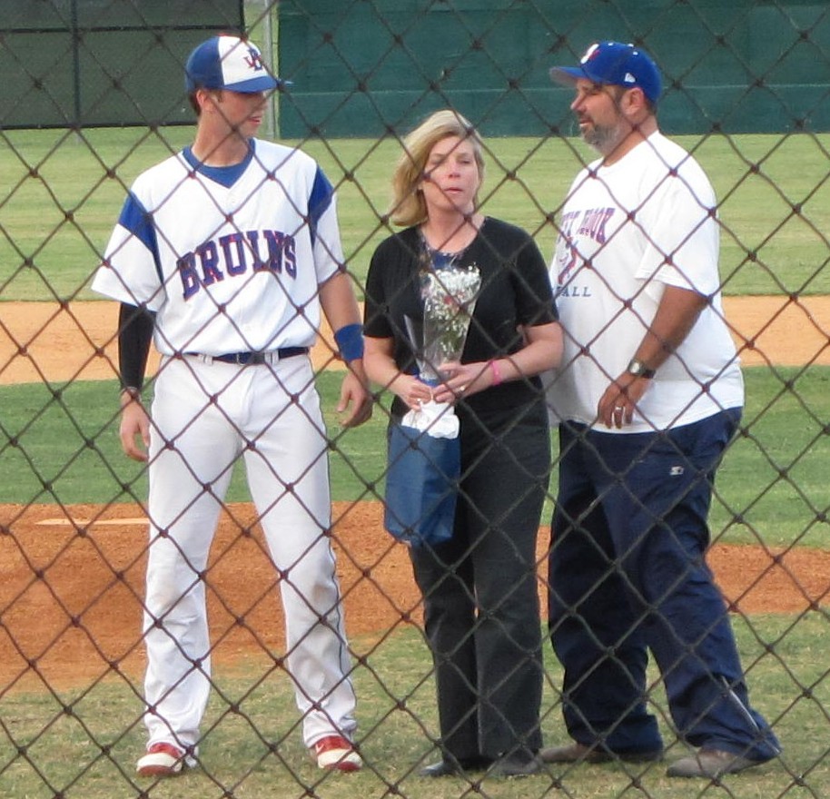 Left to right is Ryan (my grandson0, My daughter Traci and her husband Jody. We were all at Westbrook baseball for senior night. Ryan presented his MOM with a pink rose and his DAD with a present. Ryan played a good game. It was a touching moment for all. I wanted to share some people today. Enjoy. Barbara