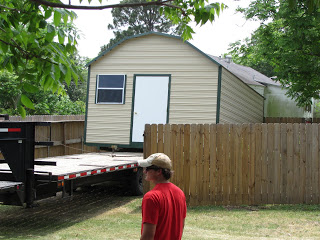 This is my studio being moved into its new location. The men had lots of trouble getting it put where I wanted it.