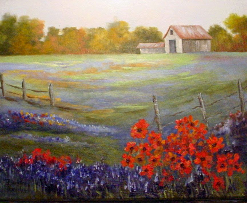 This Field of Blue Bonnets and Red Poppies are done in oils and on a stretched canvas that measures 20″ x 16″ It has sold but I can do one similar for you.