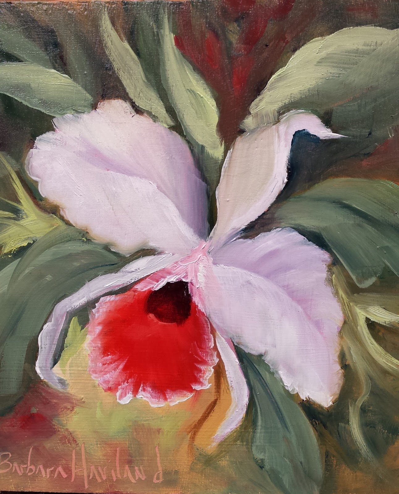 Cattleya Orchid, oils on canvas, Barbara Haviland, Floral