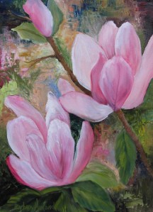 2 thoughts on “Pink Magnolias, floral, oils on canvas, Barbara Haviland