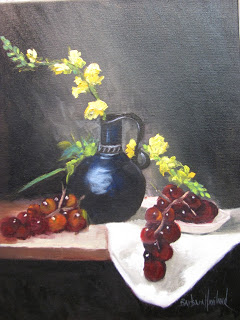 Still Life,Snapdragons,Grapes and BlackVase, Barbara Haviland,BarbsGarden,Texas Artist