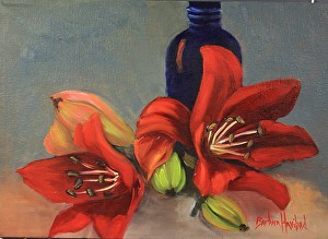 Red Daylilies, oils on canvas, Barbara Haviland,Texas Floral Artist