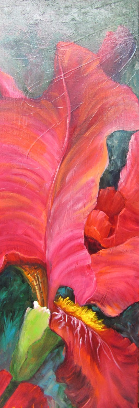 Rose Colored Iris,large oils on canvas,30×10,Barbara Haviland