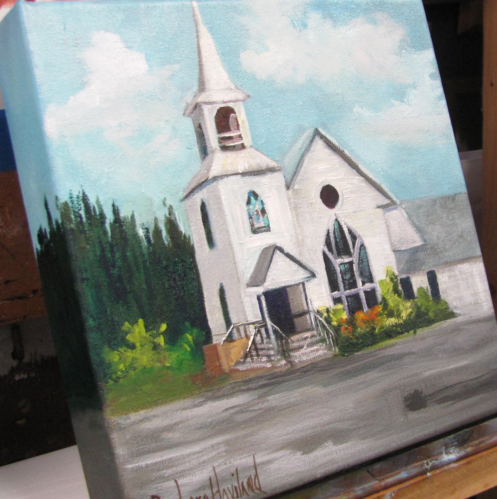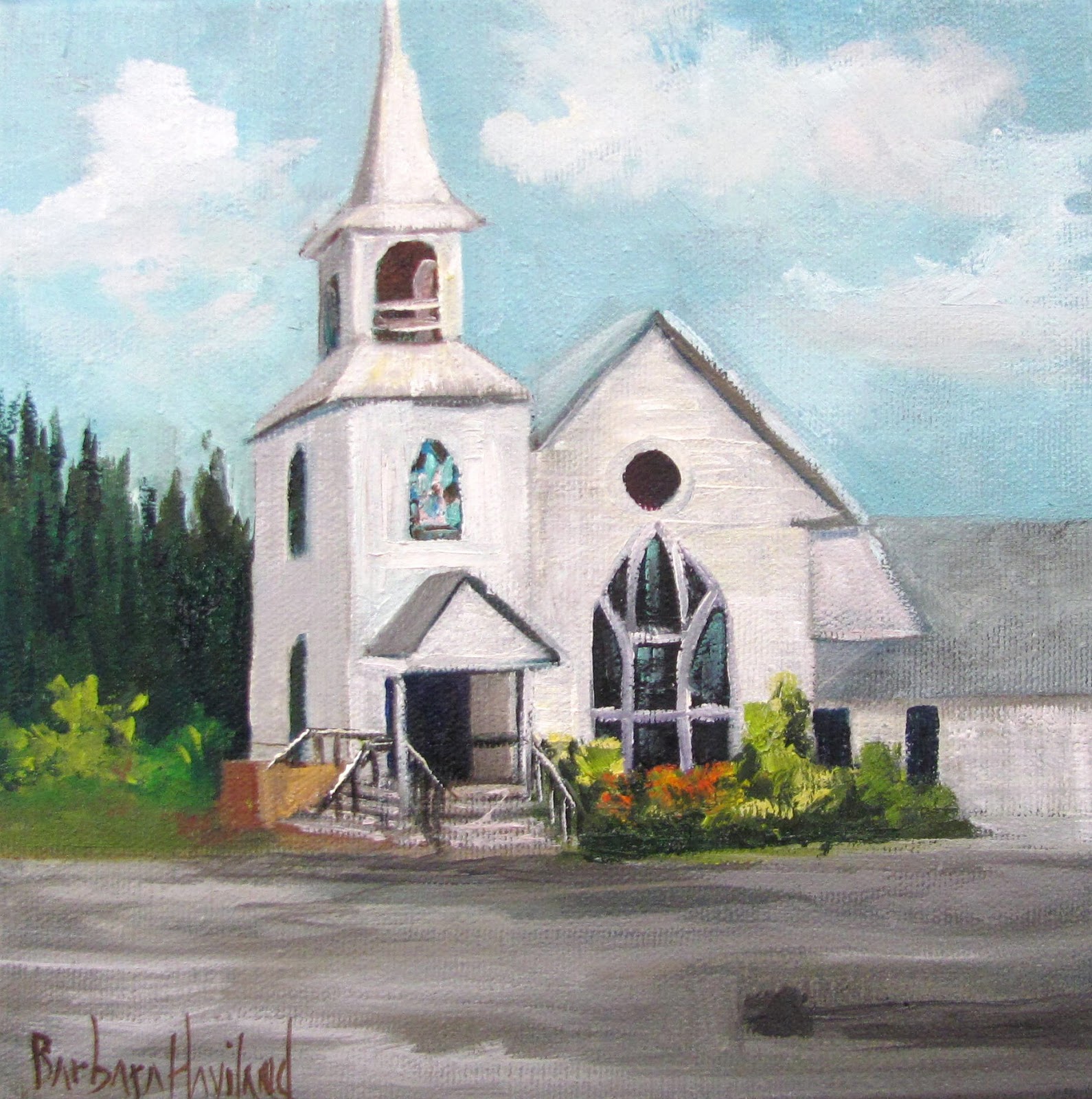 Small White Church, oils canvas,Barbara Haviland