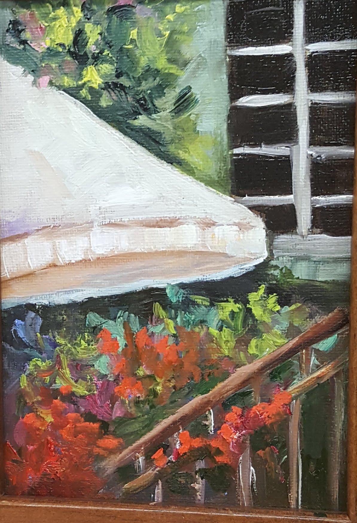 Umbrella Garden is done in oils on a 5×7 Canvas Panel