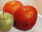 Apples Three is done in oils and on a canvas panel. I set the apples up and painted from life. The painting is 11″x14″ and is framed and signed. We then ate the subject!